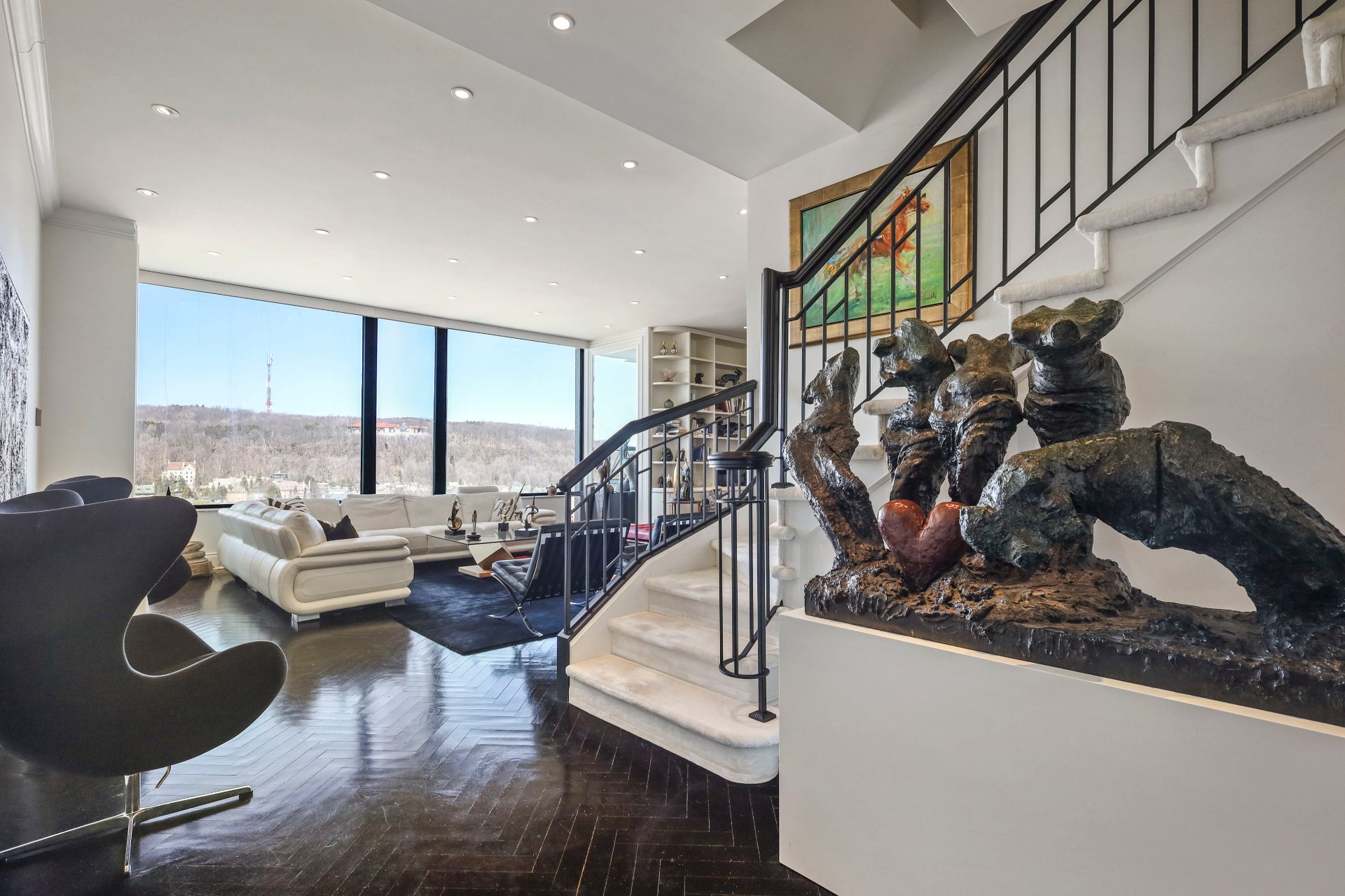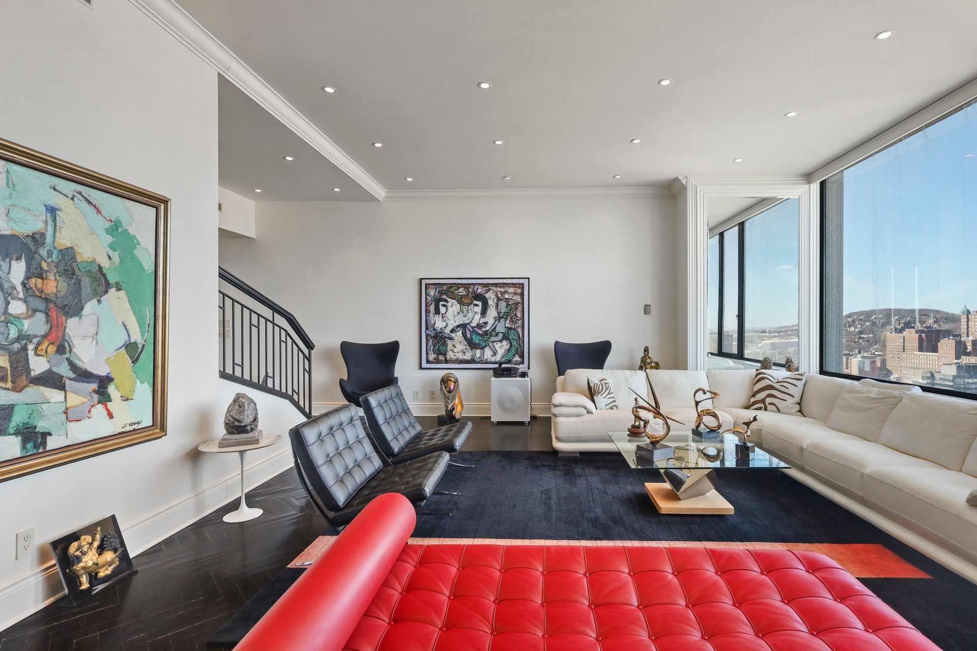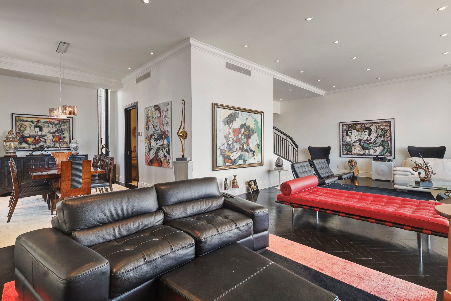 Le Port Royal, a sought-after building in the heart of the Golden Square Mile, right next to the Musée des Beaux-Arts, Montreal's famous galleries, boutiques and restaurants, it offers urban living at its best. This impressive penthouse elegantly blends the neighborhood's historic prestige with exceptional contemporary luxury. Spread over two floors bathed in natural light, it features soaring ceilings, spectacular open spaces and top-of-the-range finishes (herringbone wood flooring, marble, etc.).