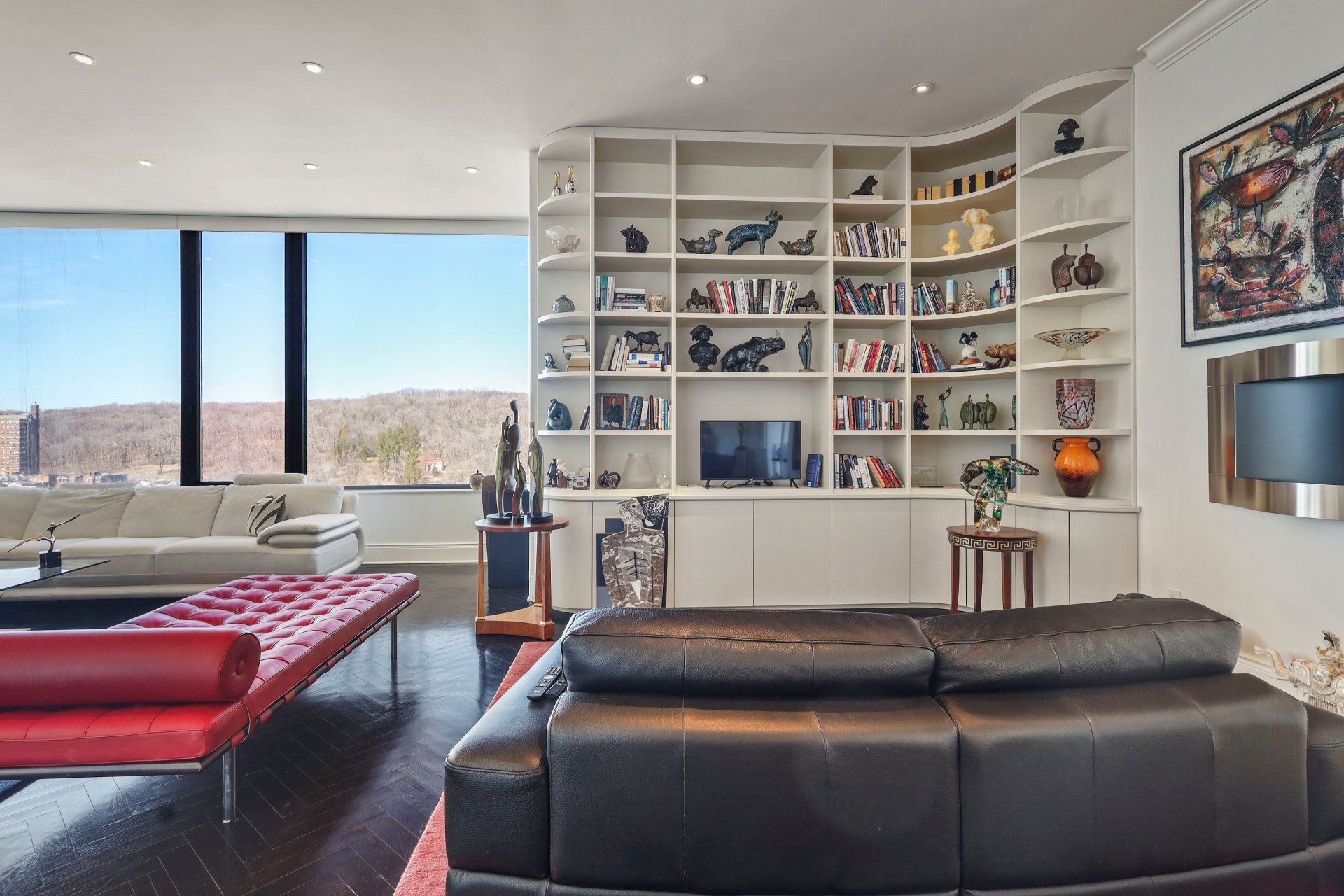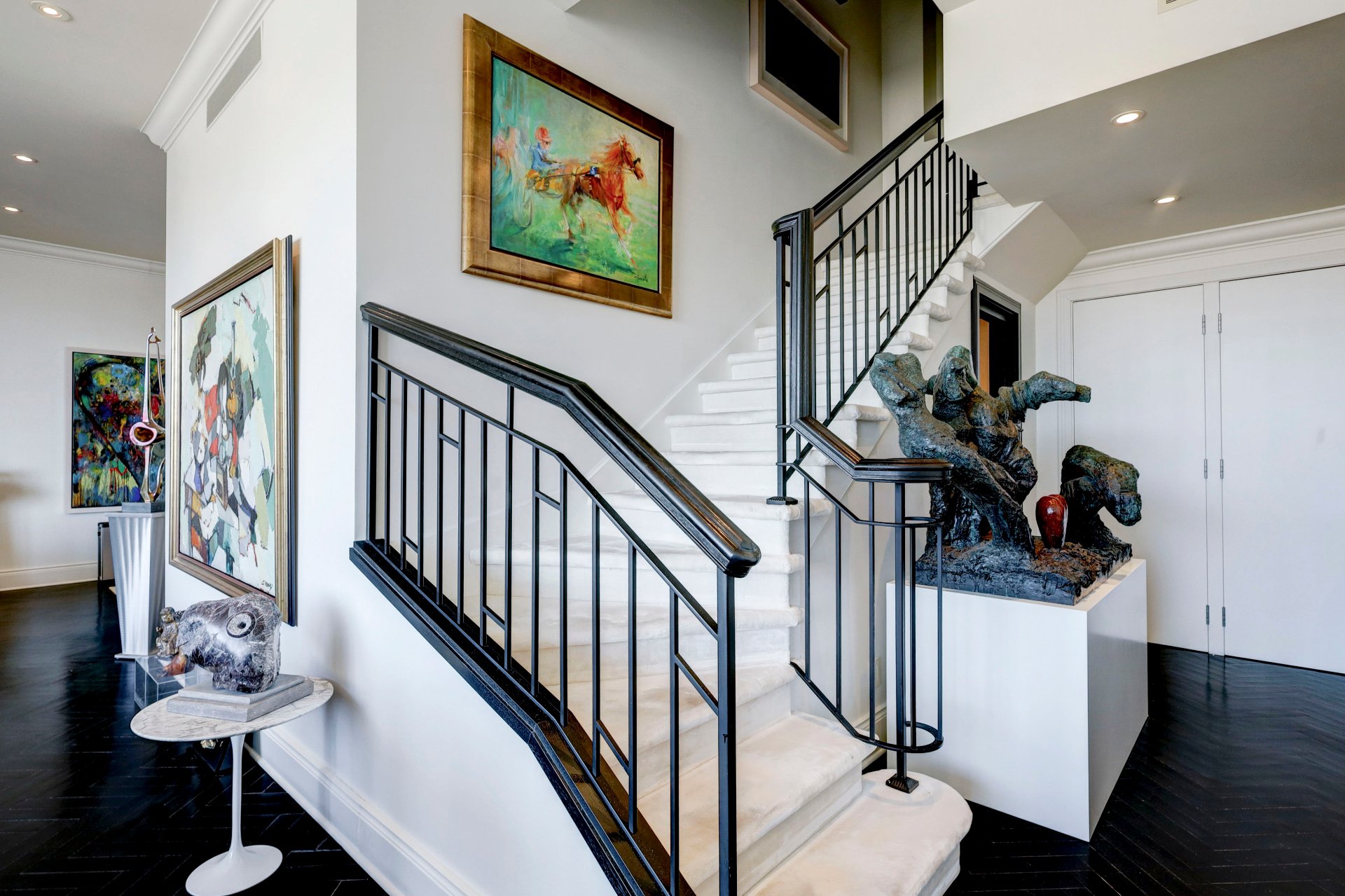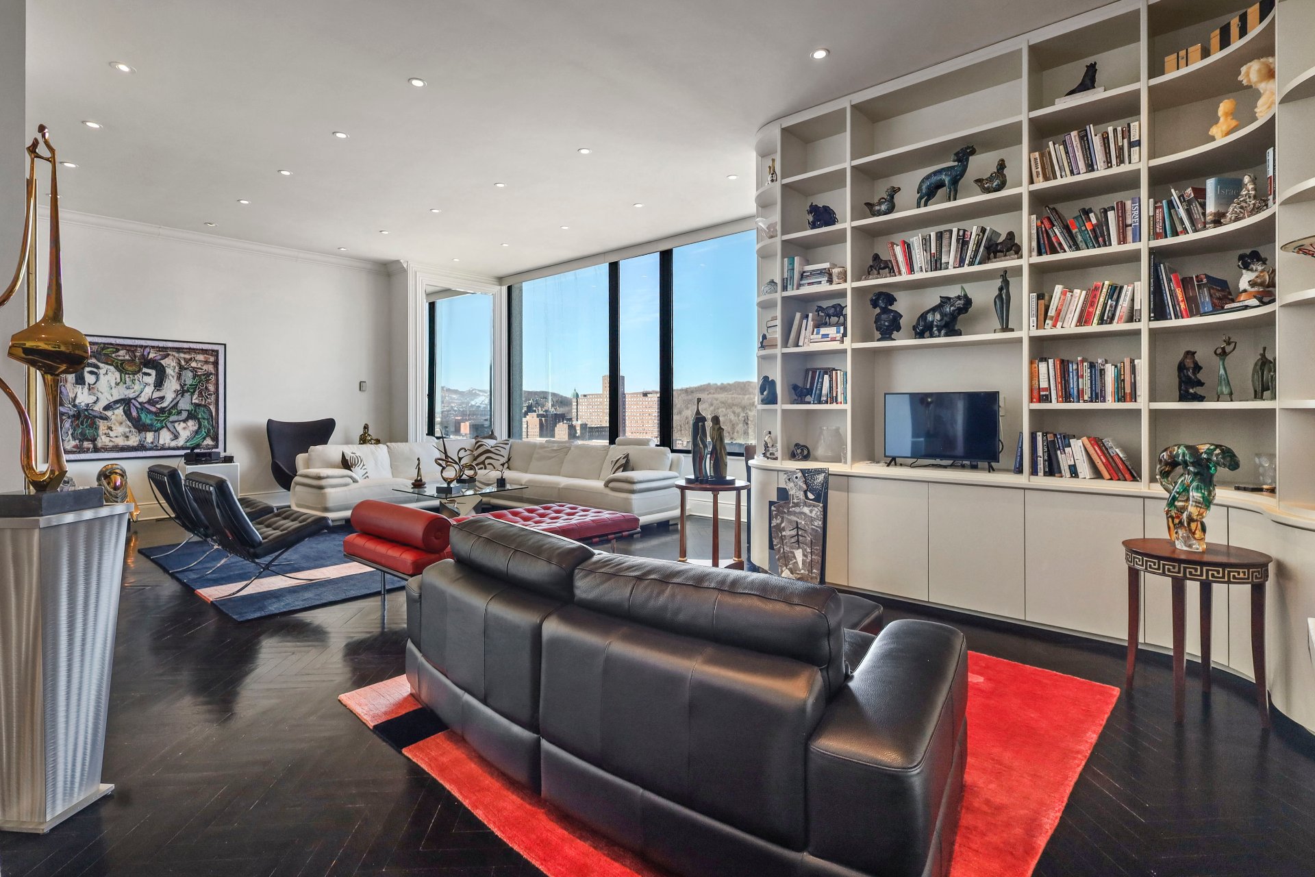 Le Port Royal, a sought-after building in the heart of the Golden Square Mile, right next to the Musée des Beaux-Arts, Montreal's famous galleries, boutiques and restaurants, it offers urban living at its best. This impressive penthouse elegantly blends the neighborhood's historic prestige with exceptional contemporary luxury. Spread over two floors bathed in natural light, it features soaring ceilings, spectacular open spaces and top-of-the-range finishes (herringbone wood flooring, marble, etc.).