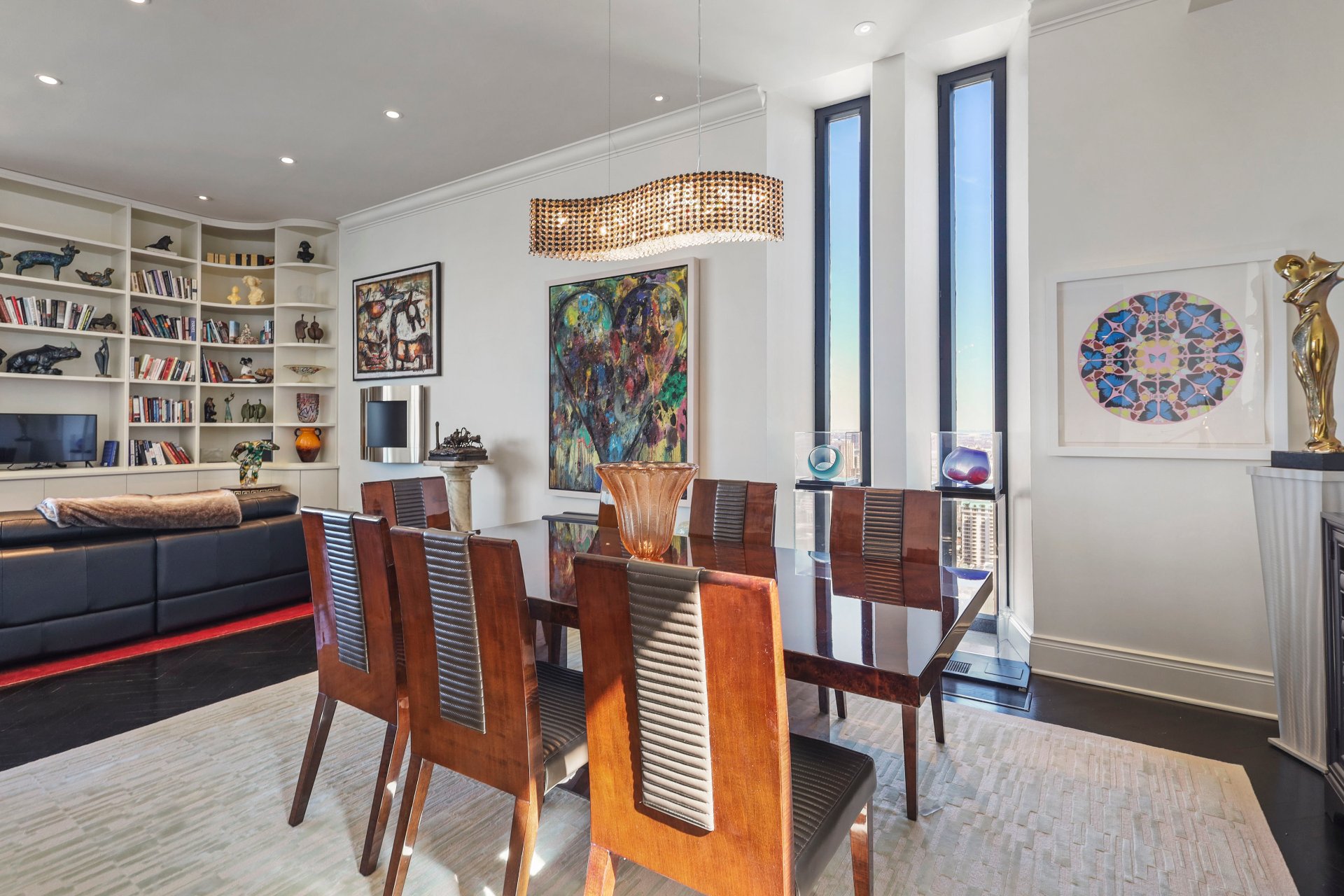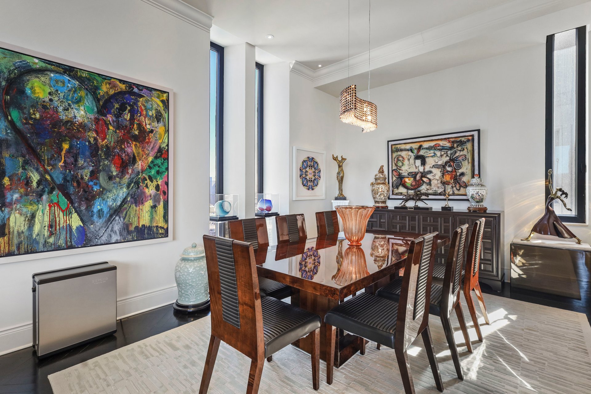 The elegantly appointed dining room opens harmoniously onto the boudoir and living room, and is a true extension of the style and comfort of the entire property.