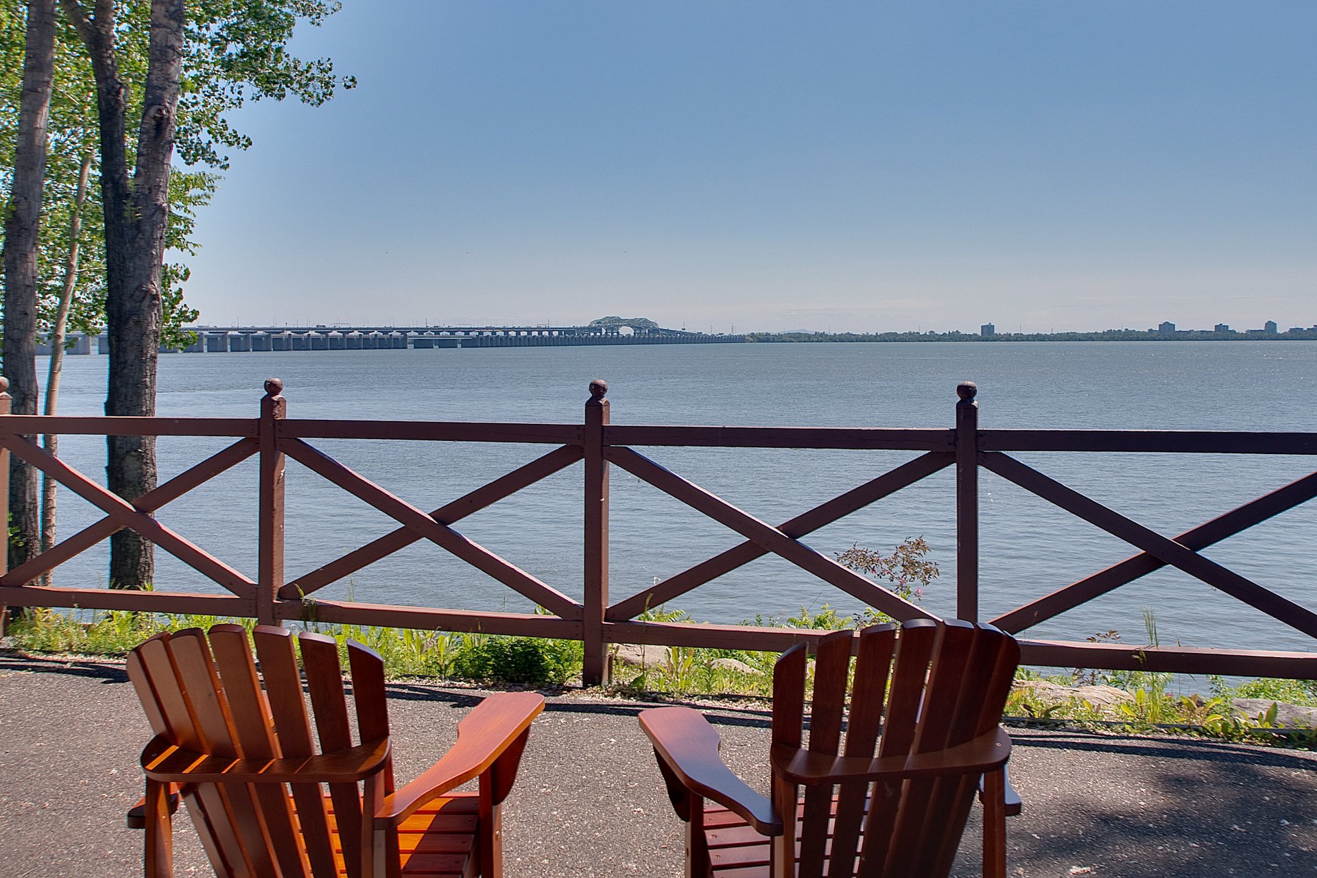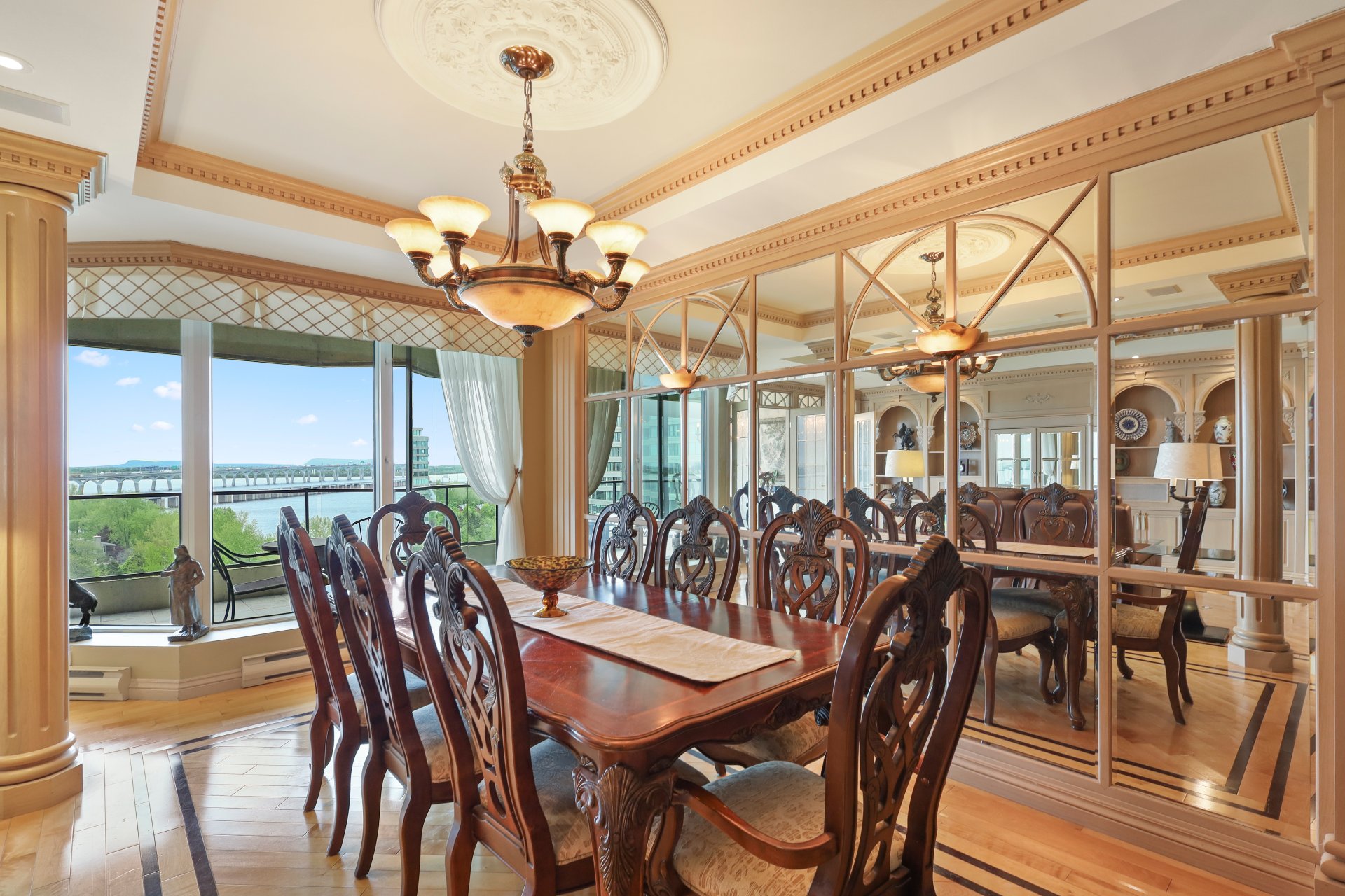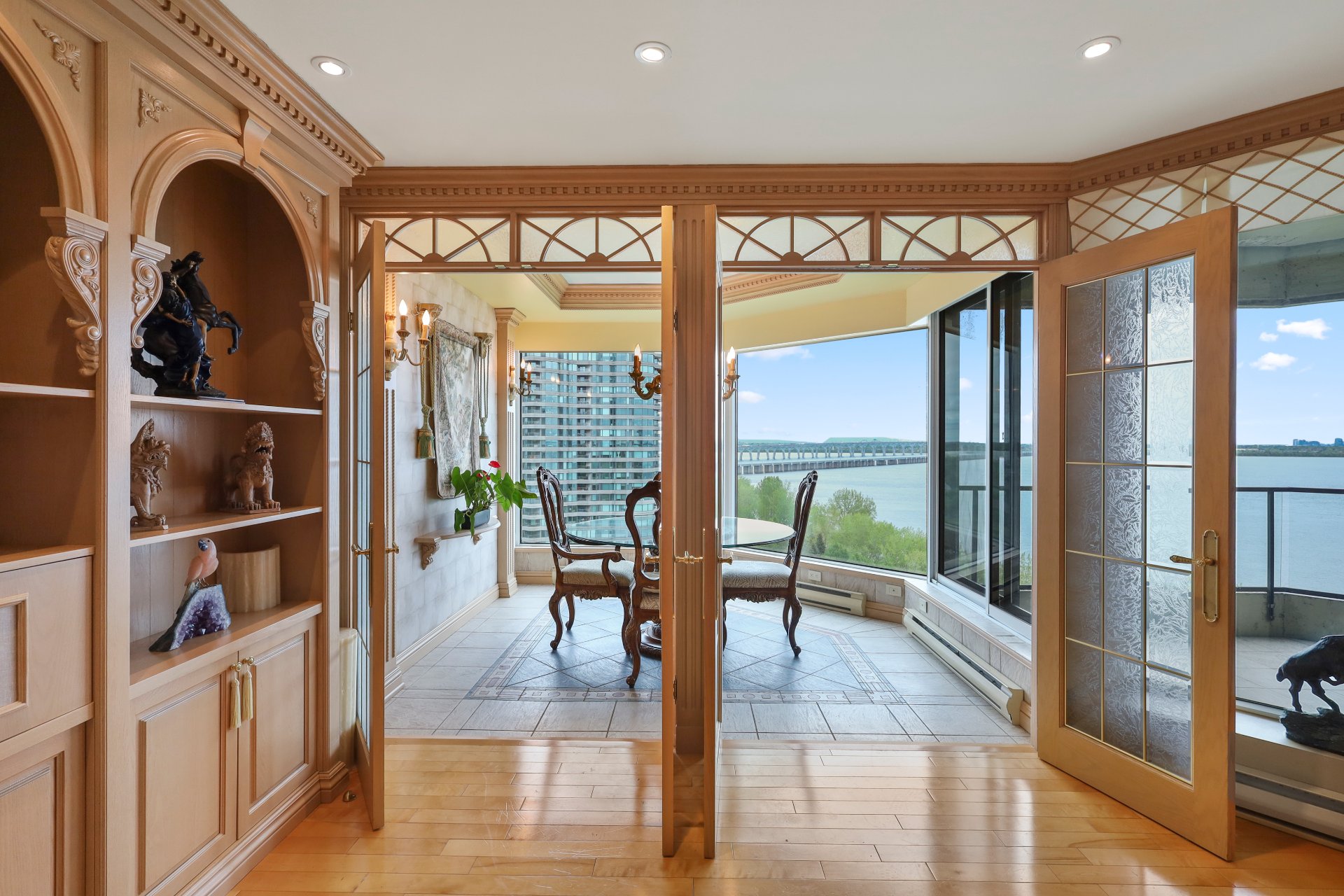 Cette unité ne vous laissera pas indifférent : joli plancher de bois avec bordures contrastantes, moulures partout, portes françaises, unité traversante, vous avez le fleuve et les jardins d'un côté et l'avant de l'immeuble de l'autre. Vous pourrez également jouir des jardins au bord de l'eau et en parcourir les sentiers.