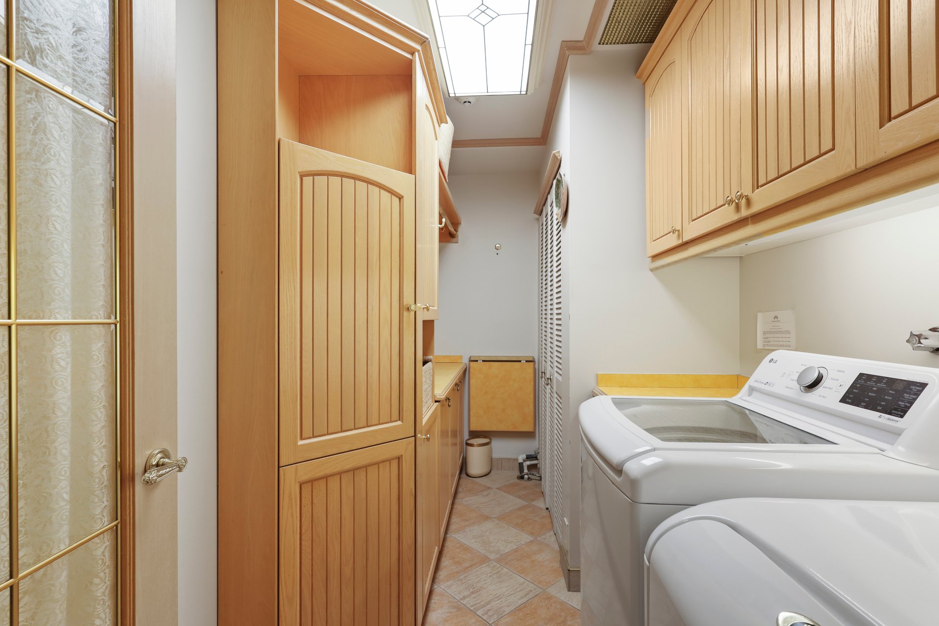 On y retrouve aussi une salle de lavage avec comptoir et rangement.