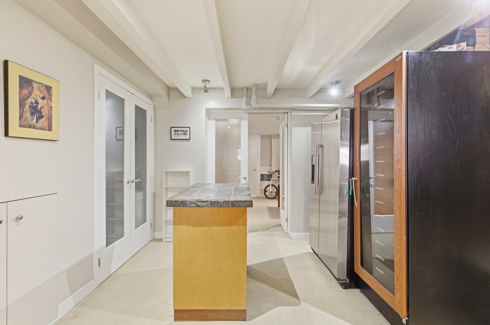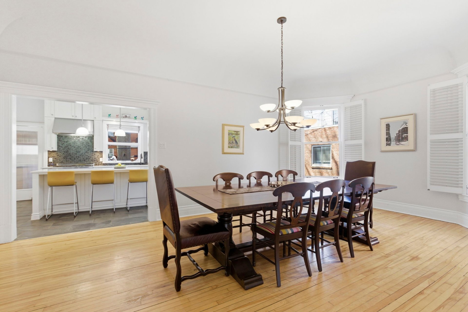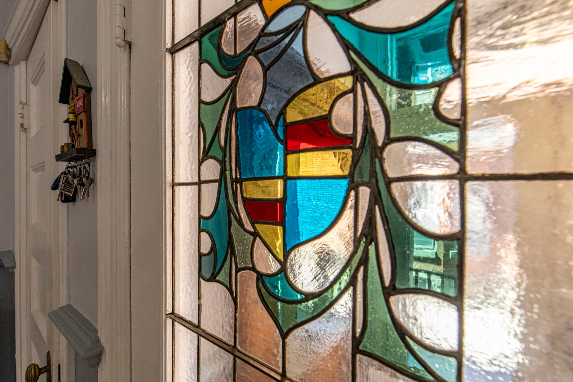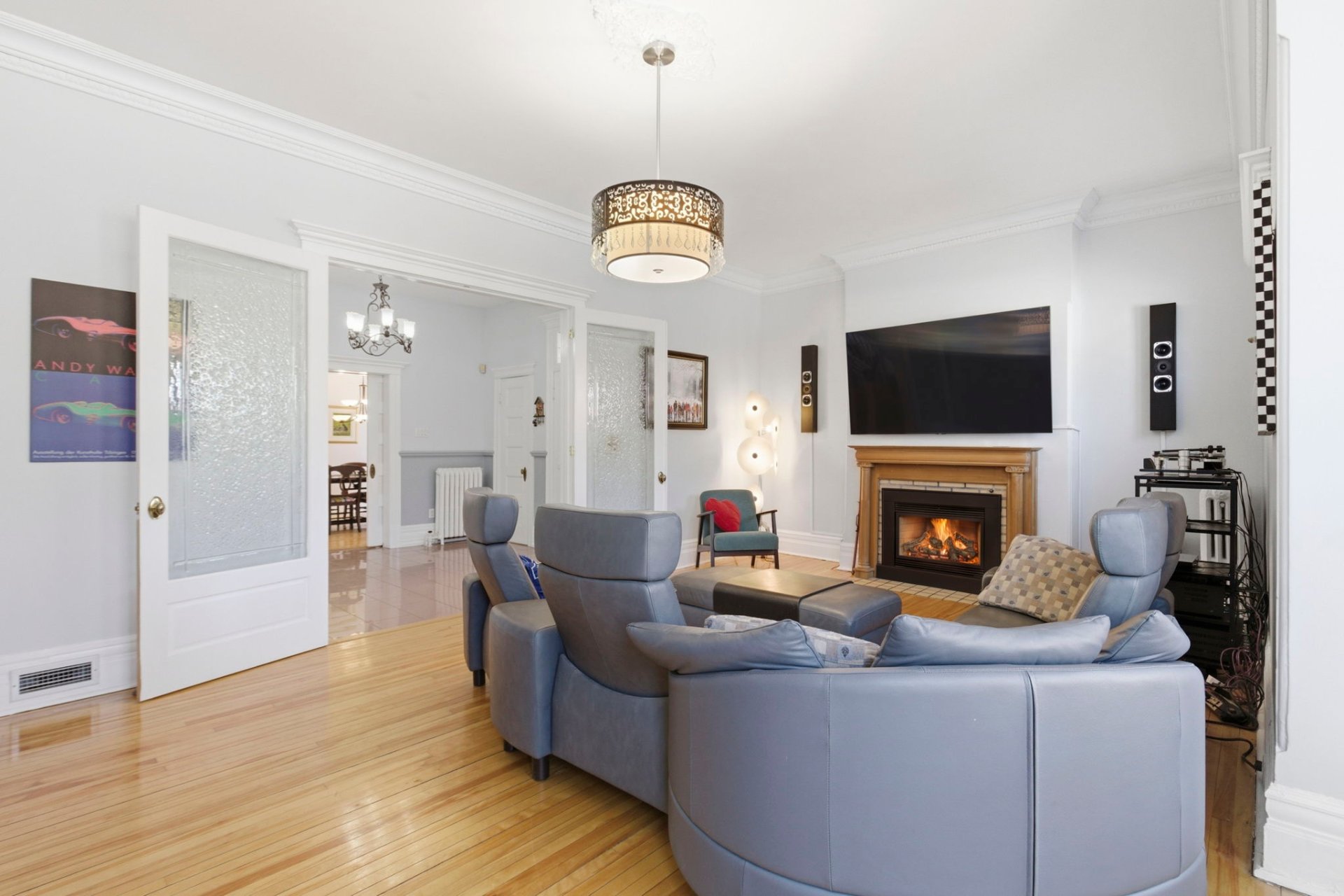Les détails architecturaux d'époque, tels que les moulures élégantes et les portes anciennes avec vitraux, ont été soigneusement préservés ou restaurés avec respect.