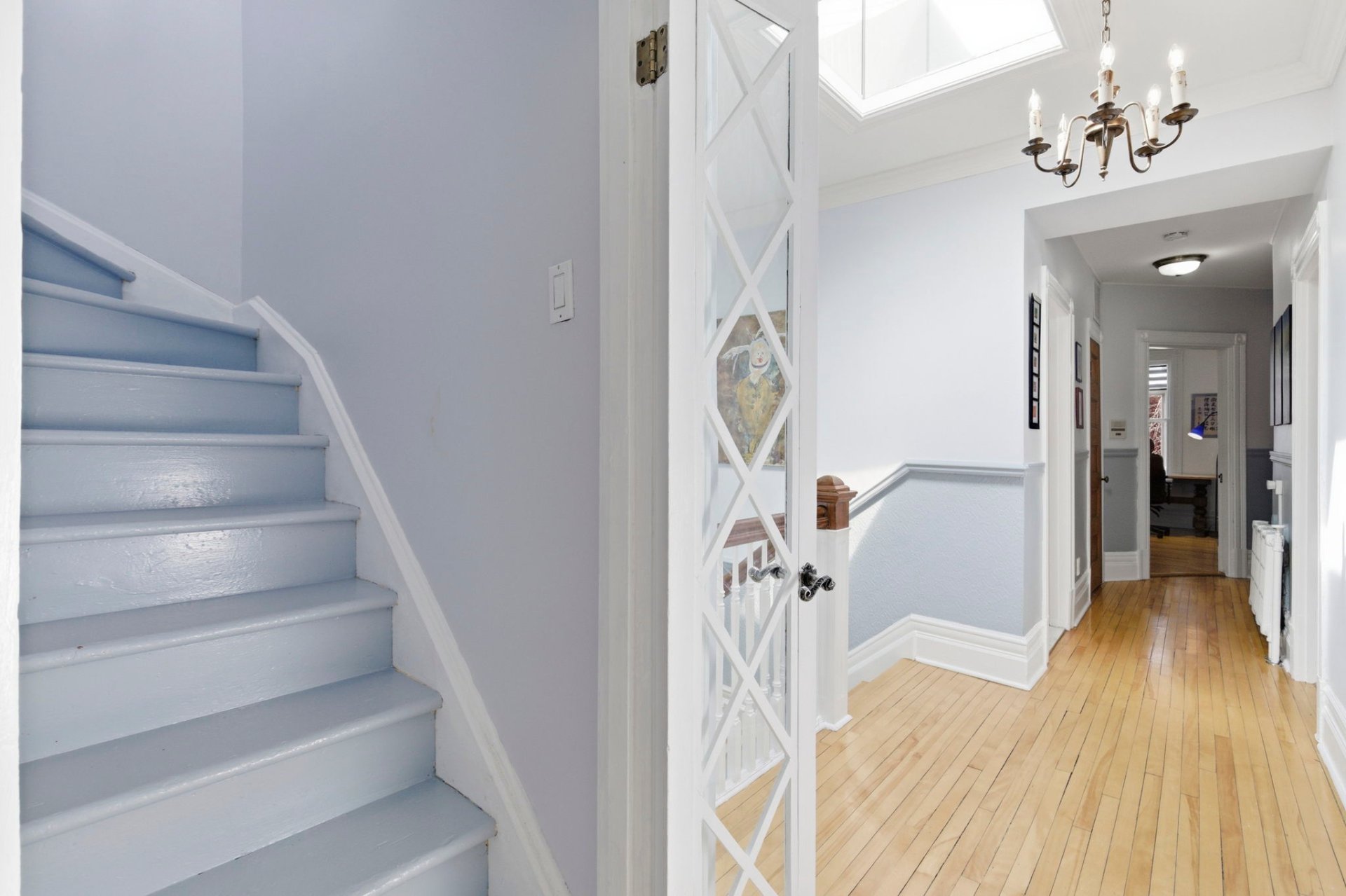 Un puits de lumière éclaire la cage d'escalier et le premier palier.