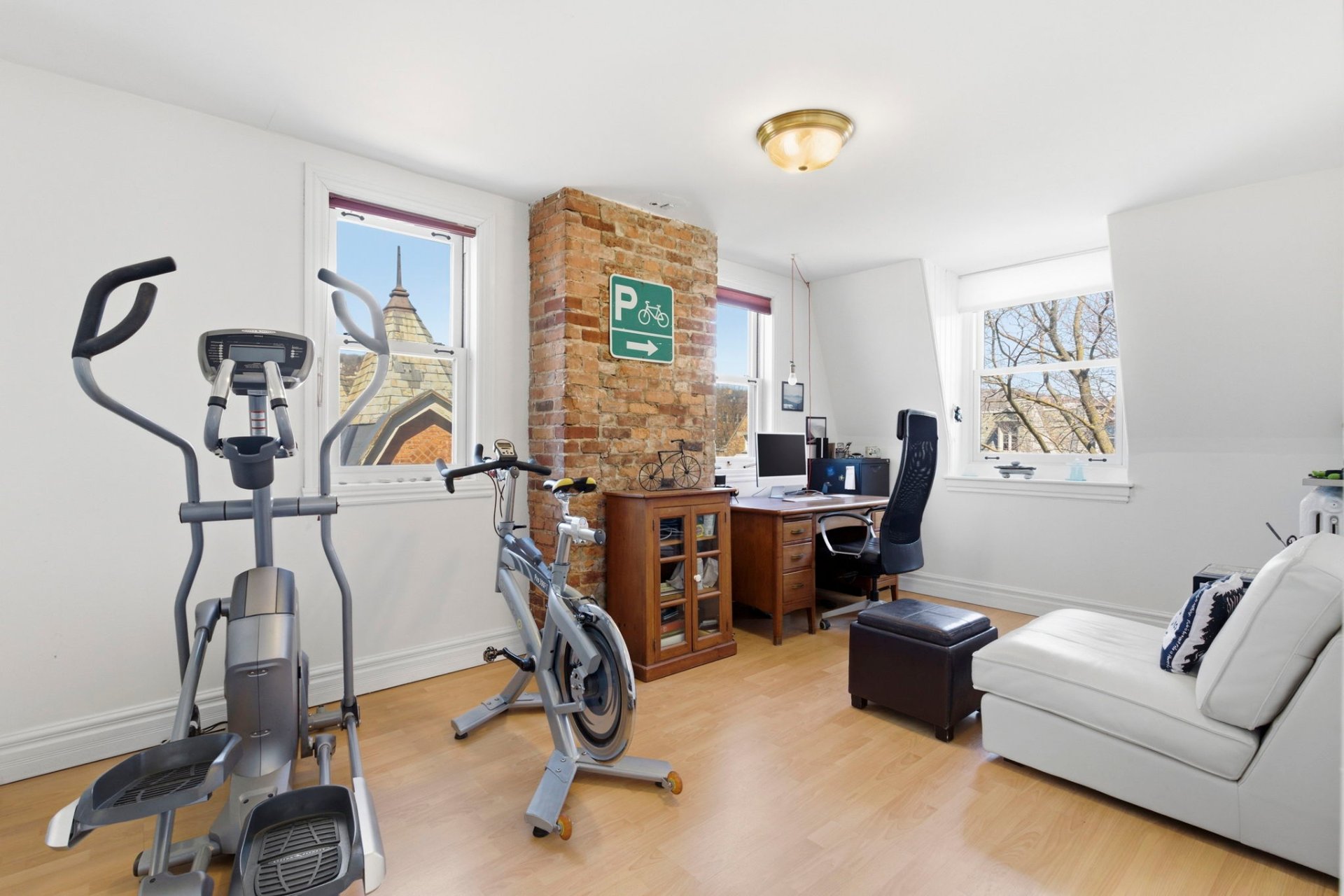 Dernier étage -2 autres chambres à coucher pouvant être utilisées comme bureau ou comme ici, salle d'exercices; -Autre salle de bain complète avec baignoire et douche séparée; -Vaste terrasse sur le toit, d'où l'on peut apercevoir la montagne.
