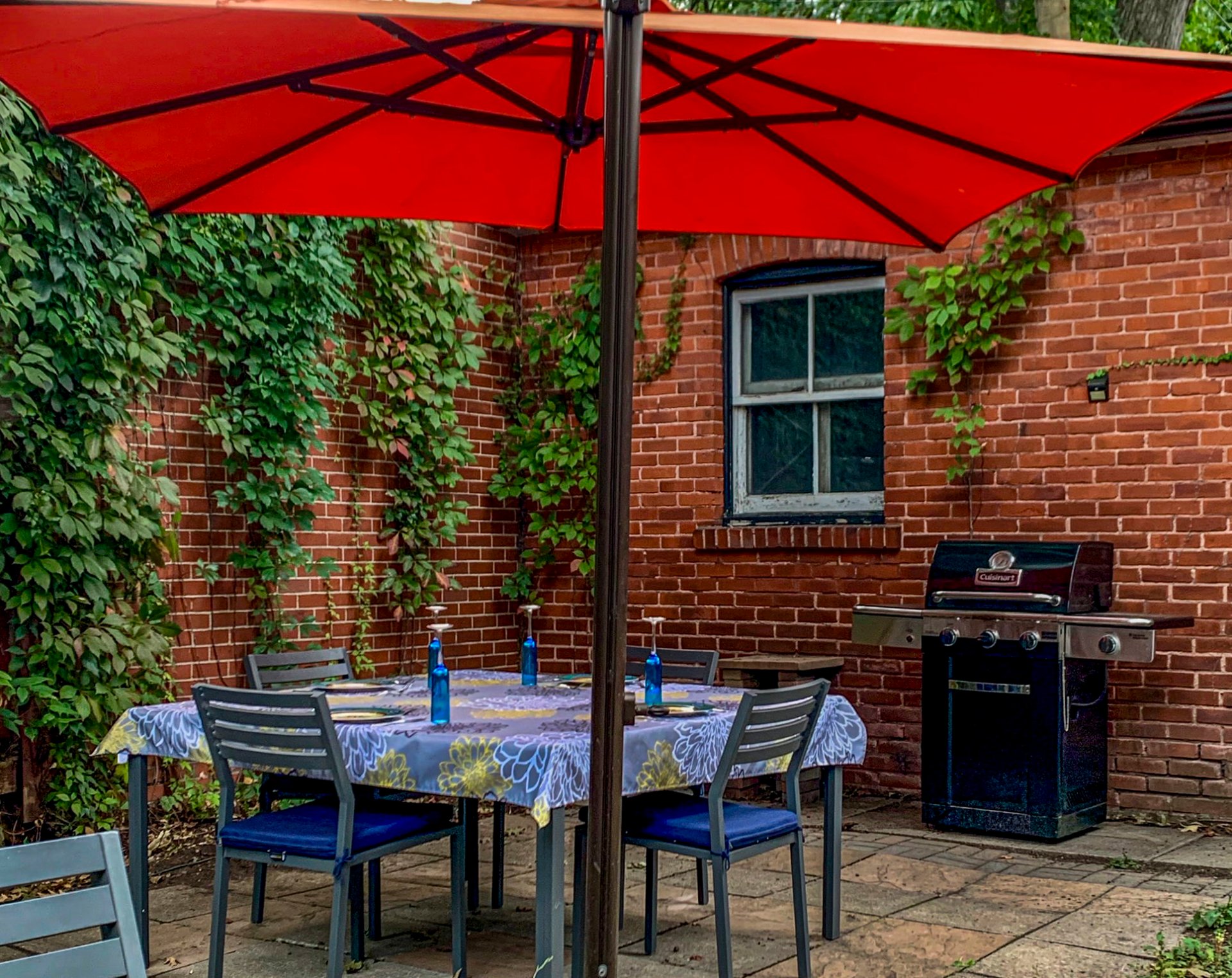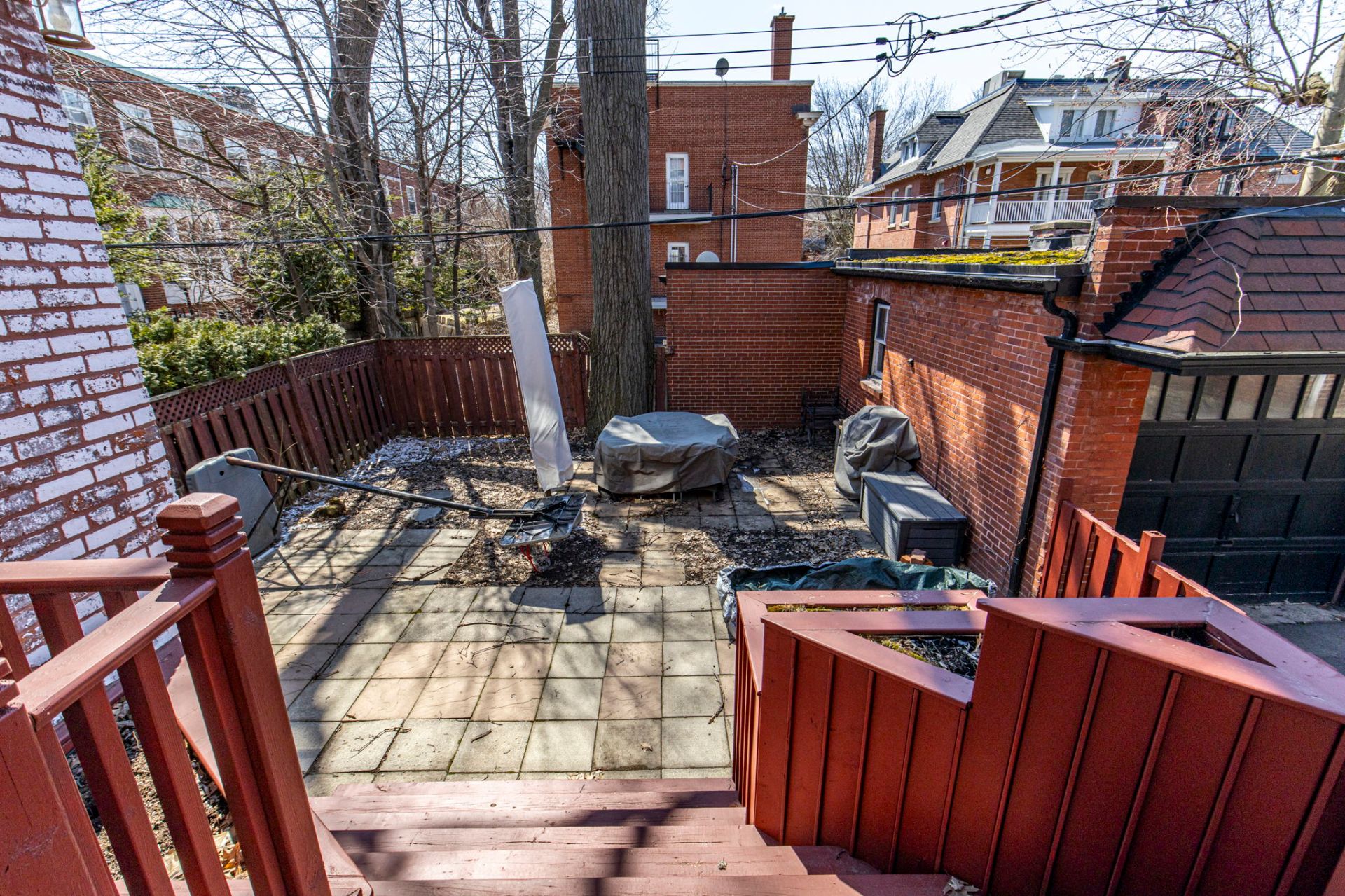 Le jardin est partiellement pavé et clôturé; on peut accéder à l'allée et au garage. Aussi, borne de recharge Tesla.