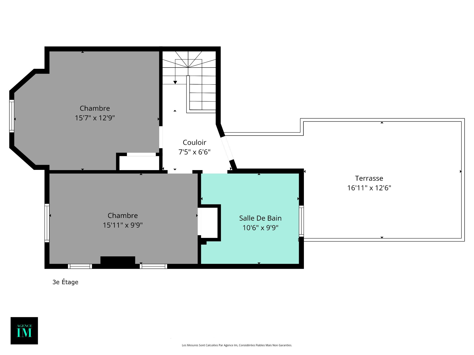 Chambre à coucher 16.7 x 12.9 P 3ième étage Bois