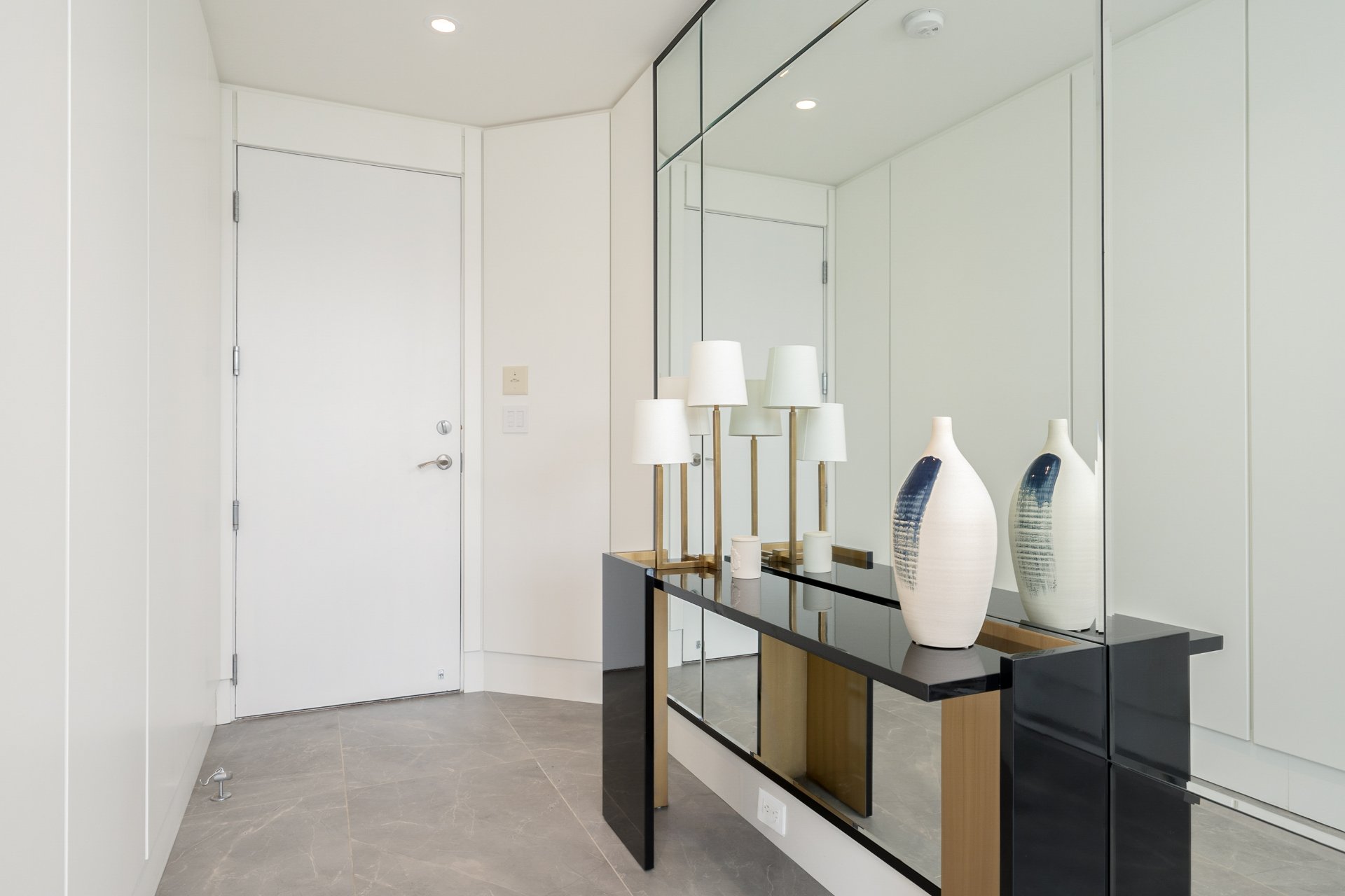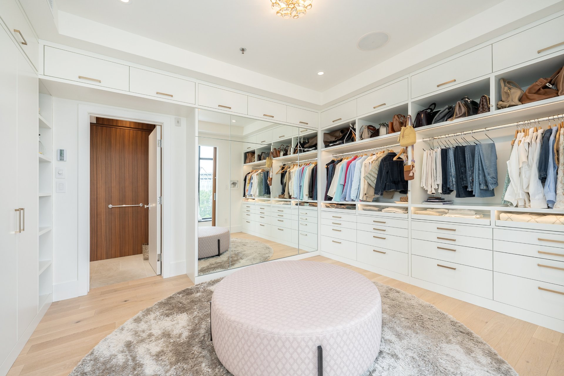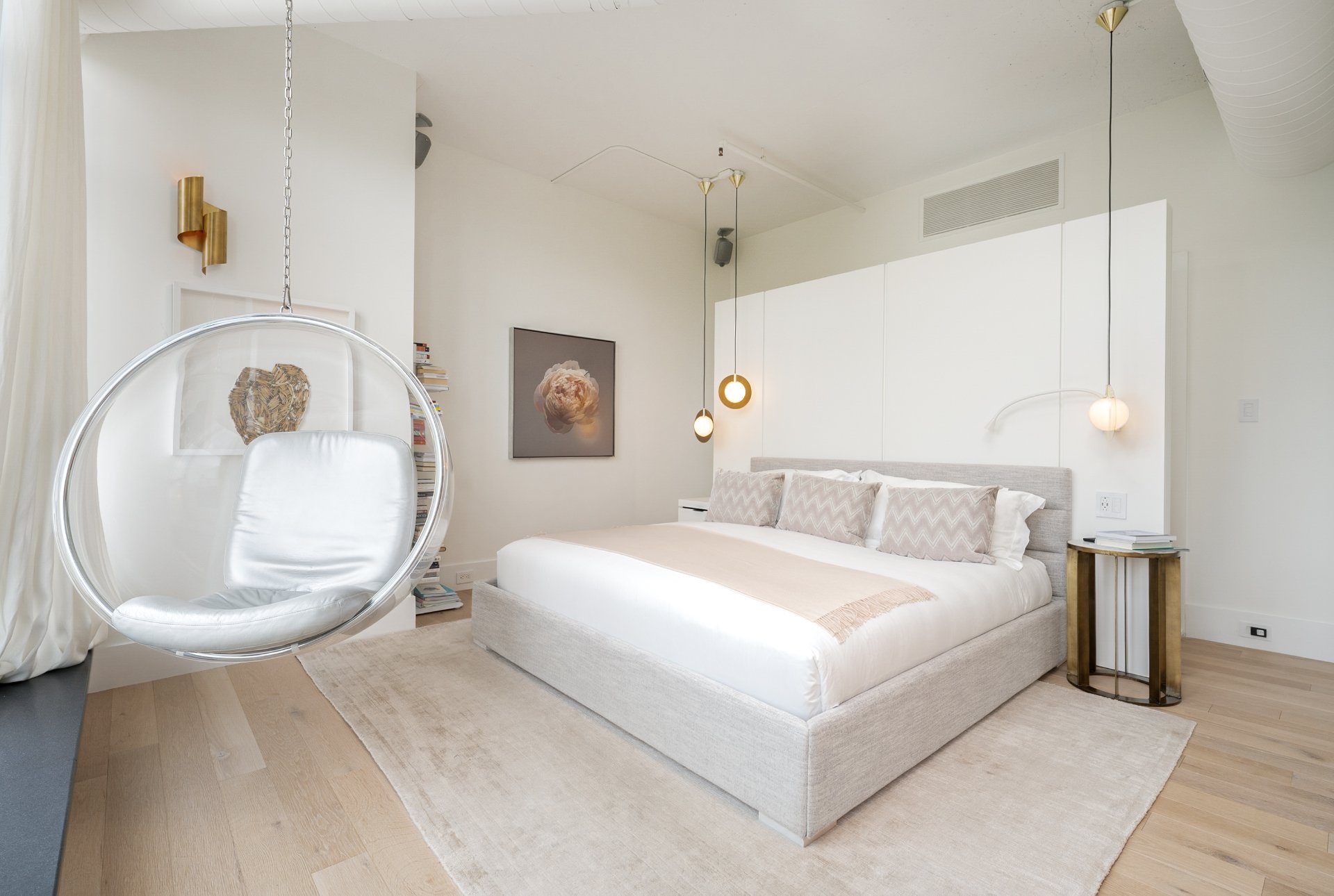 À l'origine conçu avec deux chambres, le condo a été modifié pour offrir une chambre principale de belle dimension, accompagnée d'un walk-in généreux aménagé dans la deuxième chambre. Par contre, la pièce se transforme facilement grâce à un lit escamotable dissimulé dans le mobilier.