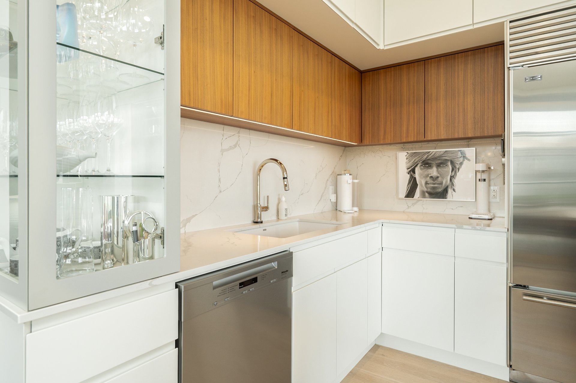 La cuisine, très bien pensée, propose un grand nombre d'armoires de rangement, un îlot central convivial ainsi qu'un coin repas devant la fenêtre, idéal pour profiter du panorama tout en déjeunant.